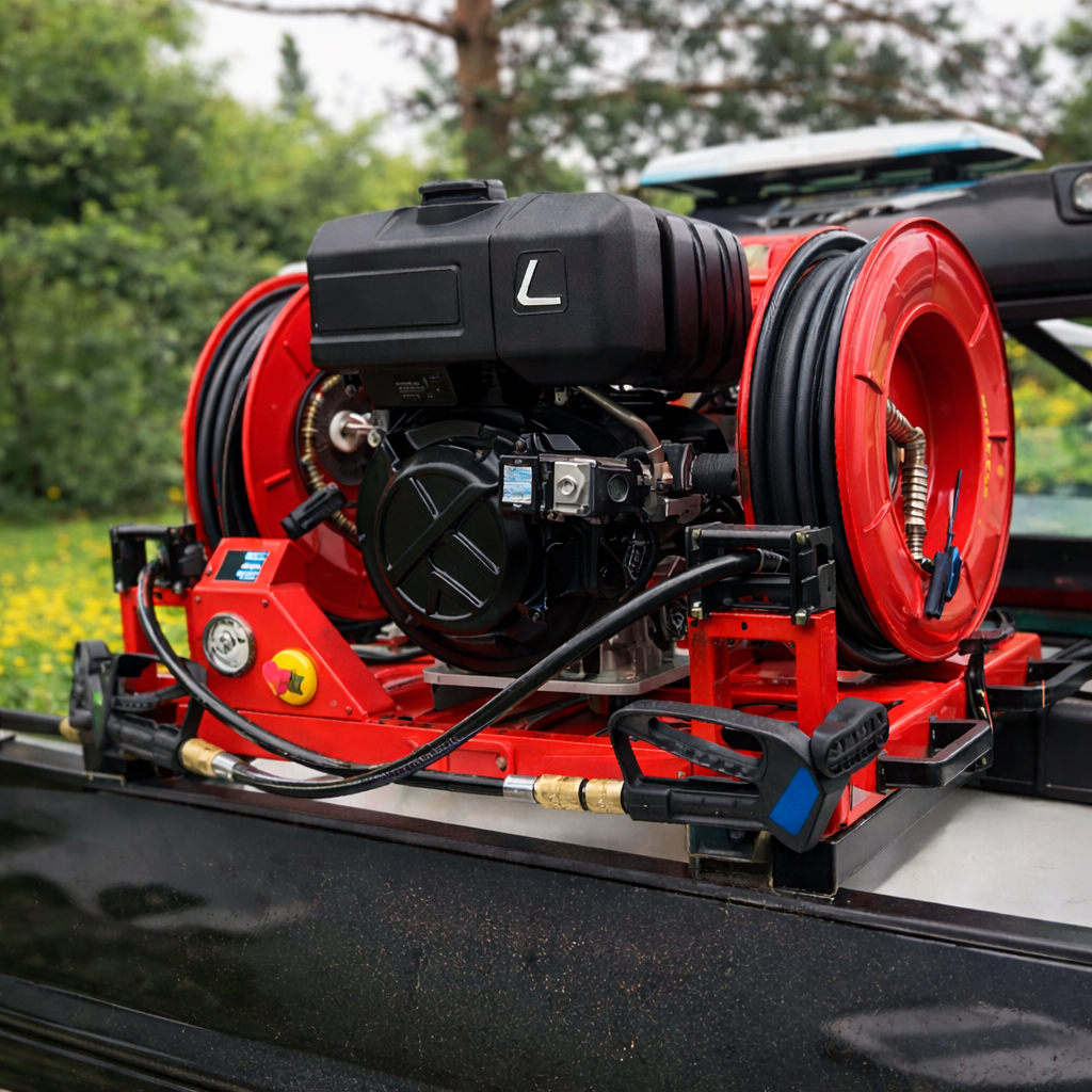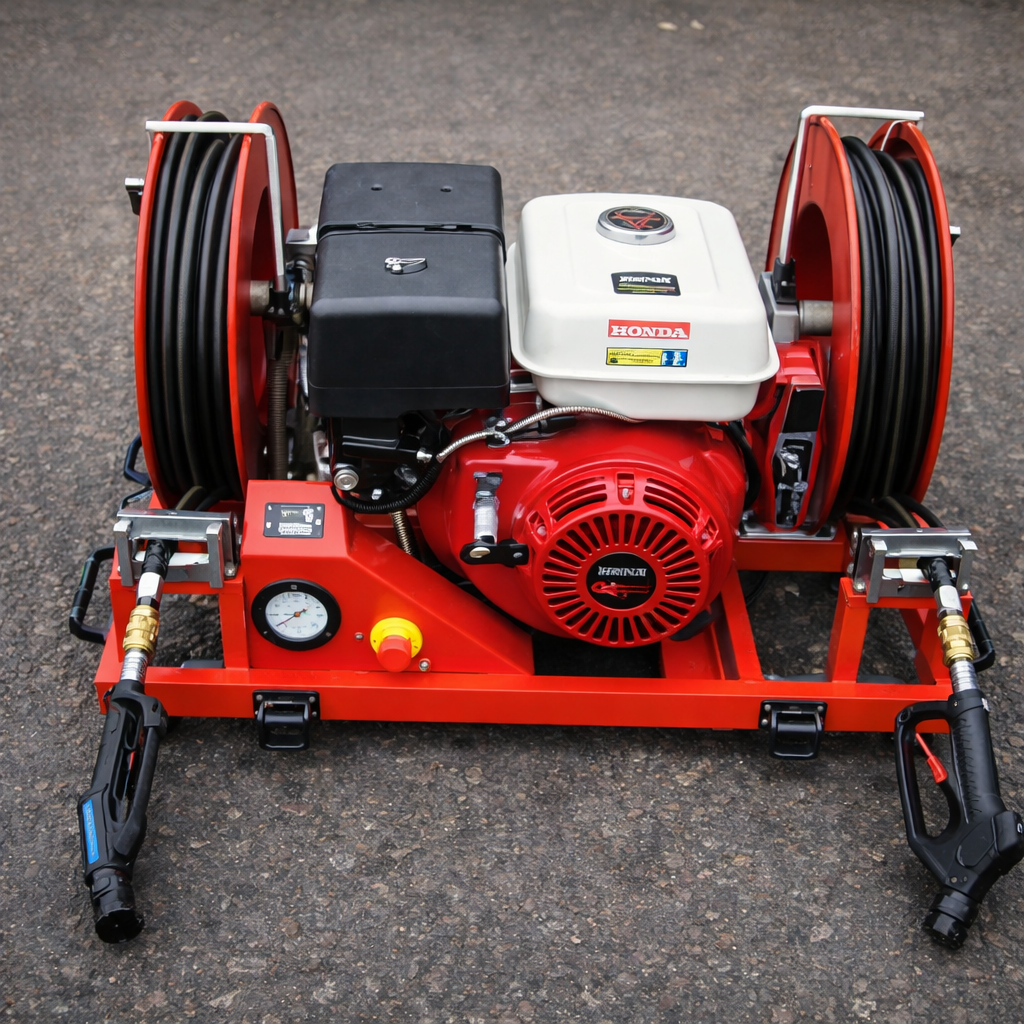 El Fire Angel es un sistema portátil compacto y ligero, diseñado para intervenciones rápidas con alta presión de 185 bar (2800 psi). Puede conectarse a un tanque de agua propio o al tanque del vehículo y operar con uno o dos carretes de manguera de 20 o 30 m, según la configuración. Los modelos estándar incluyen lanza jet-spray de alta presión para agua, mientras que los modelos F incorporan lanza doble para agua y espuma con eductor integrado. Su diseño con 4 mangos ergonómicos, controles intuitivos y arranque eléctrico facilita la operación y el despliegue rápido en emergencias. Incluye acoples rápidos tipo Guyson, conexión de agua Storz, pantalla LCD con información del motor y presión de la bomba, además de botón de parada de emergencia.